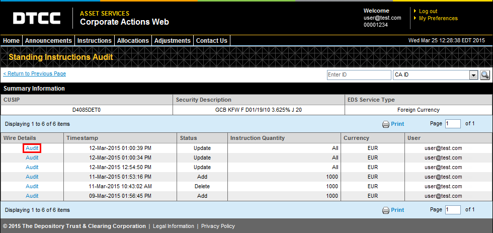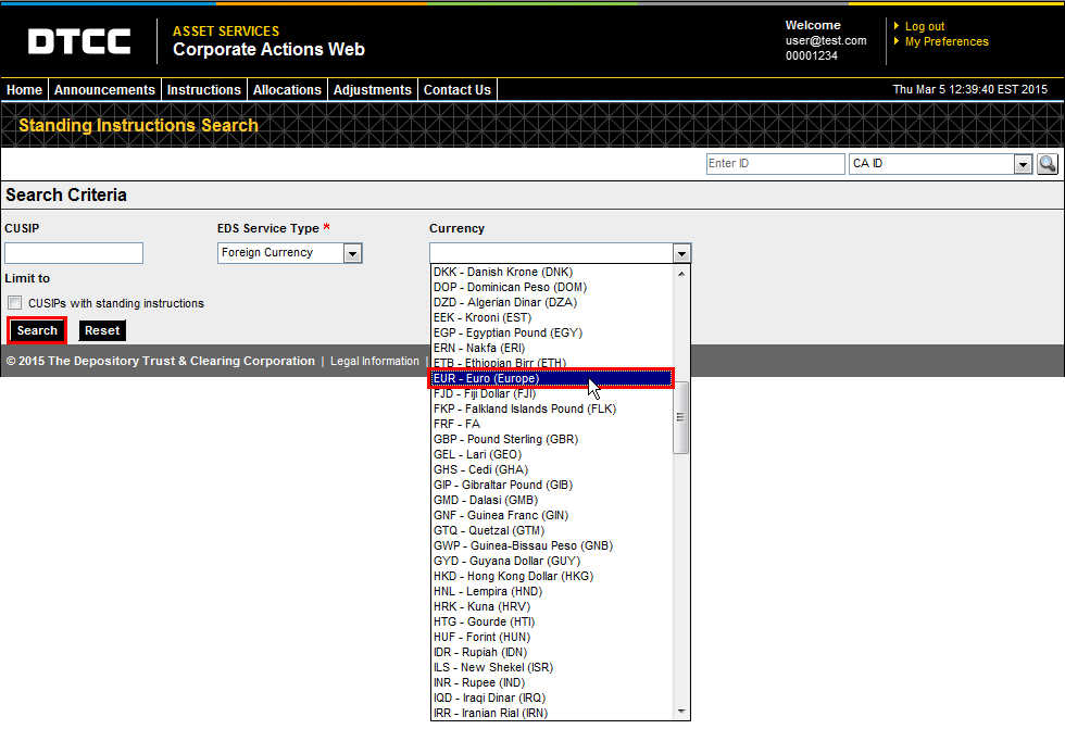 CA Web: Adding CUSIP-Level Standing Instructions for Foreign Currency