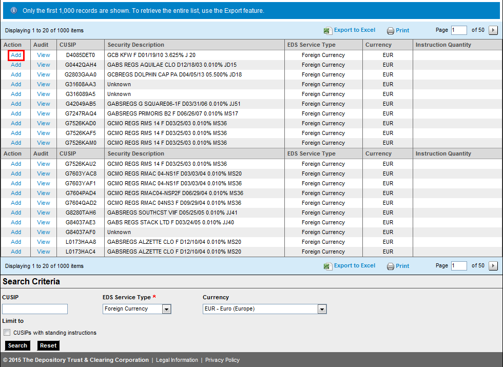 If you did not search by an individual CUSIP, the results include all CUSIPs for your selected currency type.