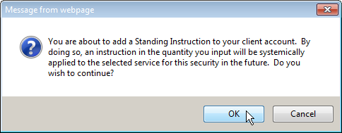 Click Cancel if you do not want to apply these instructions to all applicable events for this security and currency in the future.