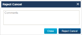 - Type a comment in the Comments box of the Reject Cancel screen and then click Reject Cancel.