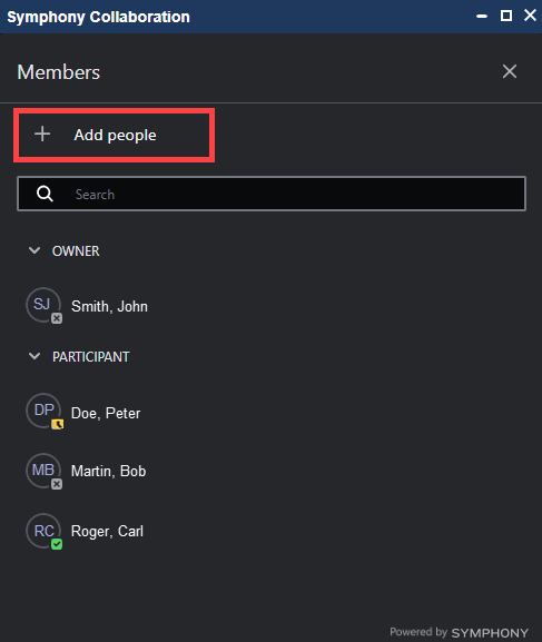 To remove a member from the Symphony Chat Room or change a member’s type of access, hover over the member’s name, select the three button icon (