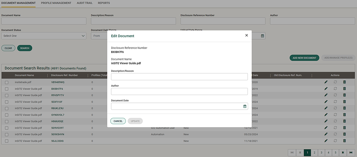 - Click Update Document to save the changes. Clicking Cancel Edit closes the page without saving any changes.