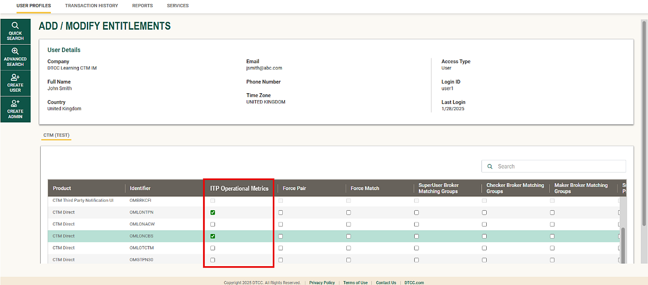 - When creating a new user in step 1, select Product: ITP Services & MyDTCC Account