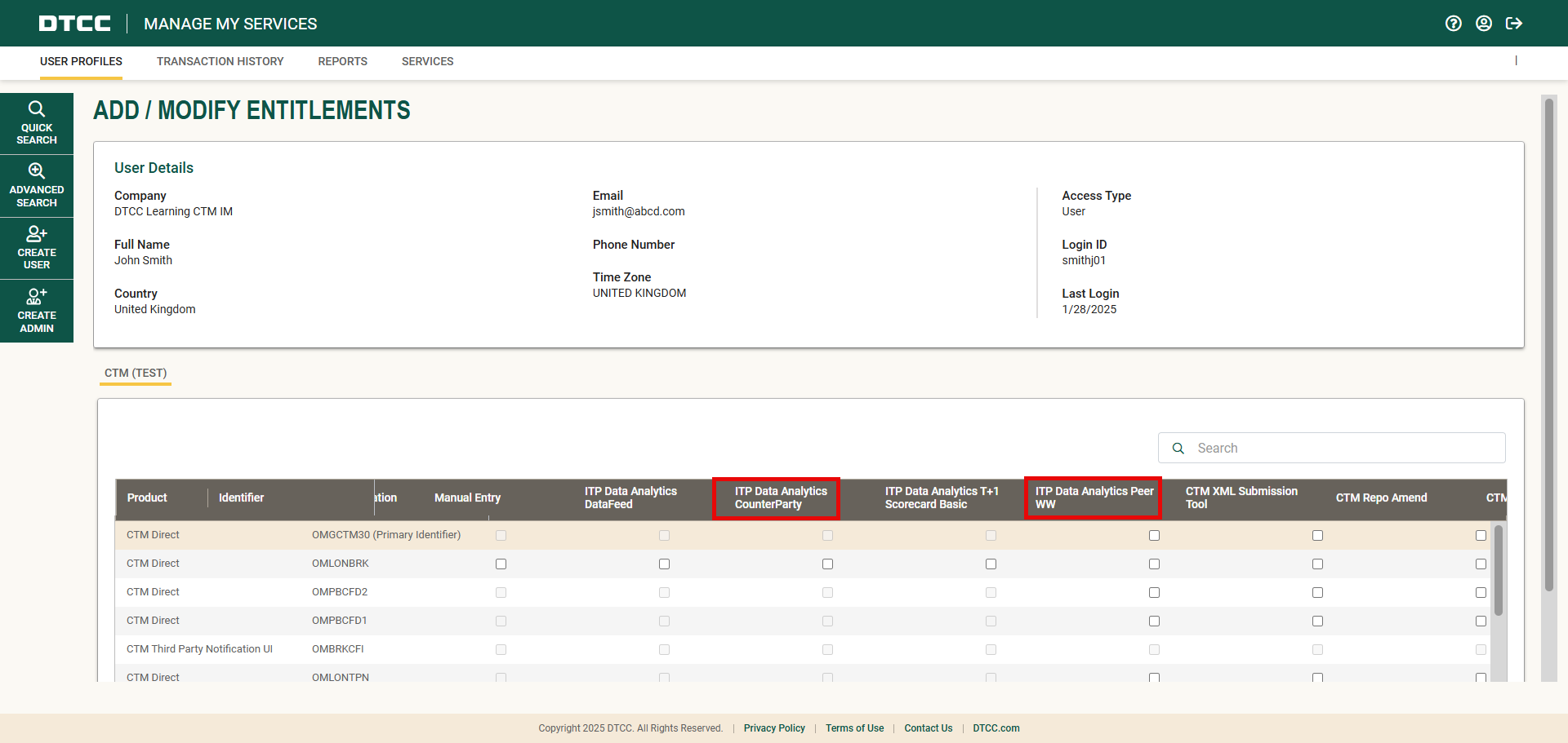 Your organization will need to first subscribe to the ITP Data Analytics Benchmarking service, following which your Product Administrator will be able to provision your CTM user ID with access to the ITP Data Analytics Peer and ITP Data Analytics Counterparty roles. Please contact your DTCC Sales Representative about signing up for the ITP Data Analytics Benchmarking subscription.