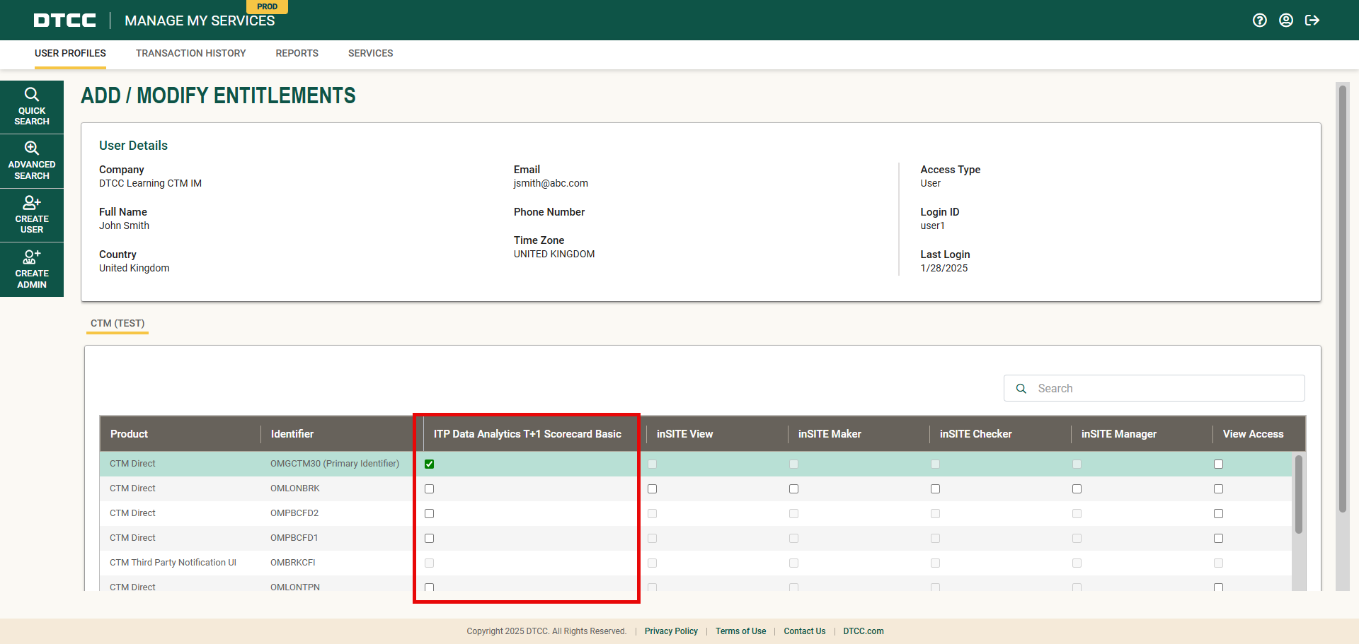 1. User entitlements are managed through Manage My Services. In the Manage My Services Product Help, view Creating a User (for ITP product accounts) and follow steps 1-3