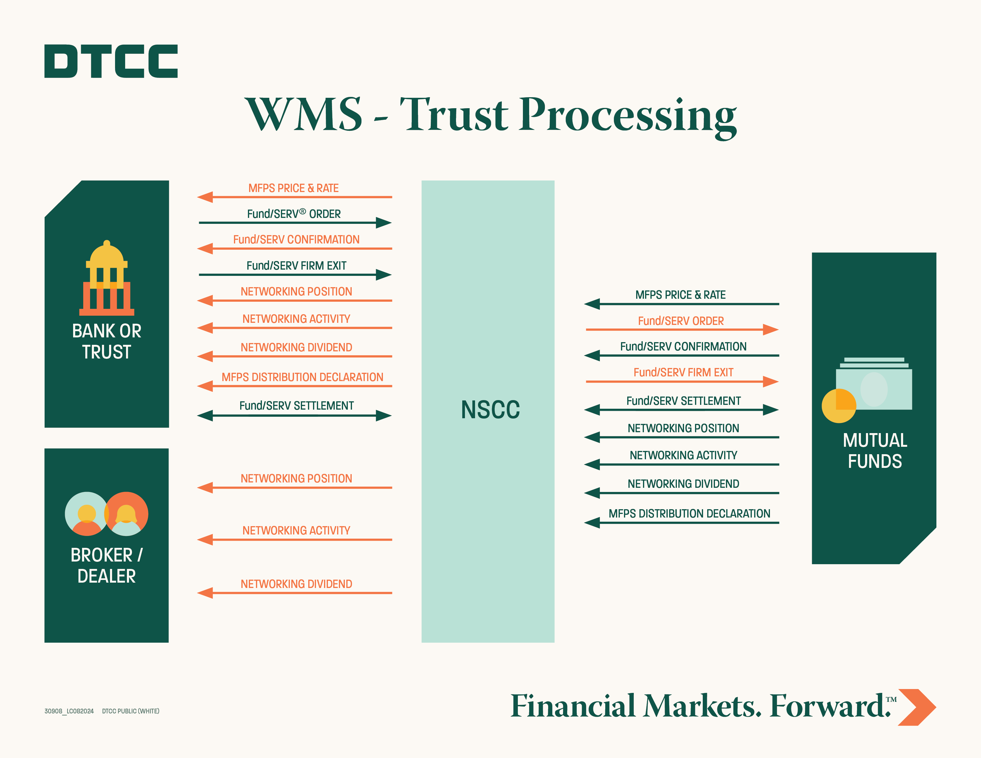 The Trust Processing Guidelines document was originally created by the Trust User Group and the ICI (Investment Company Institute) Bank, Trust and Retirement Advisory Committee to facilitate the exchange of information flowing between bank trust departments and fund groups utilizing NSCC’s Fund/SERV® and Networking systems.